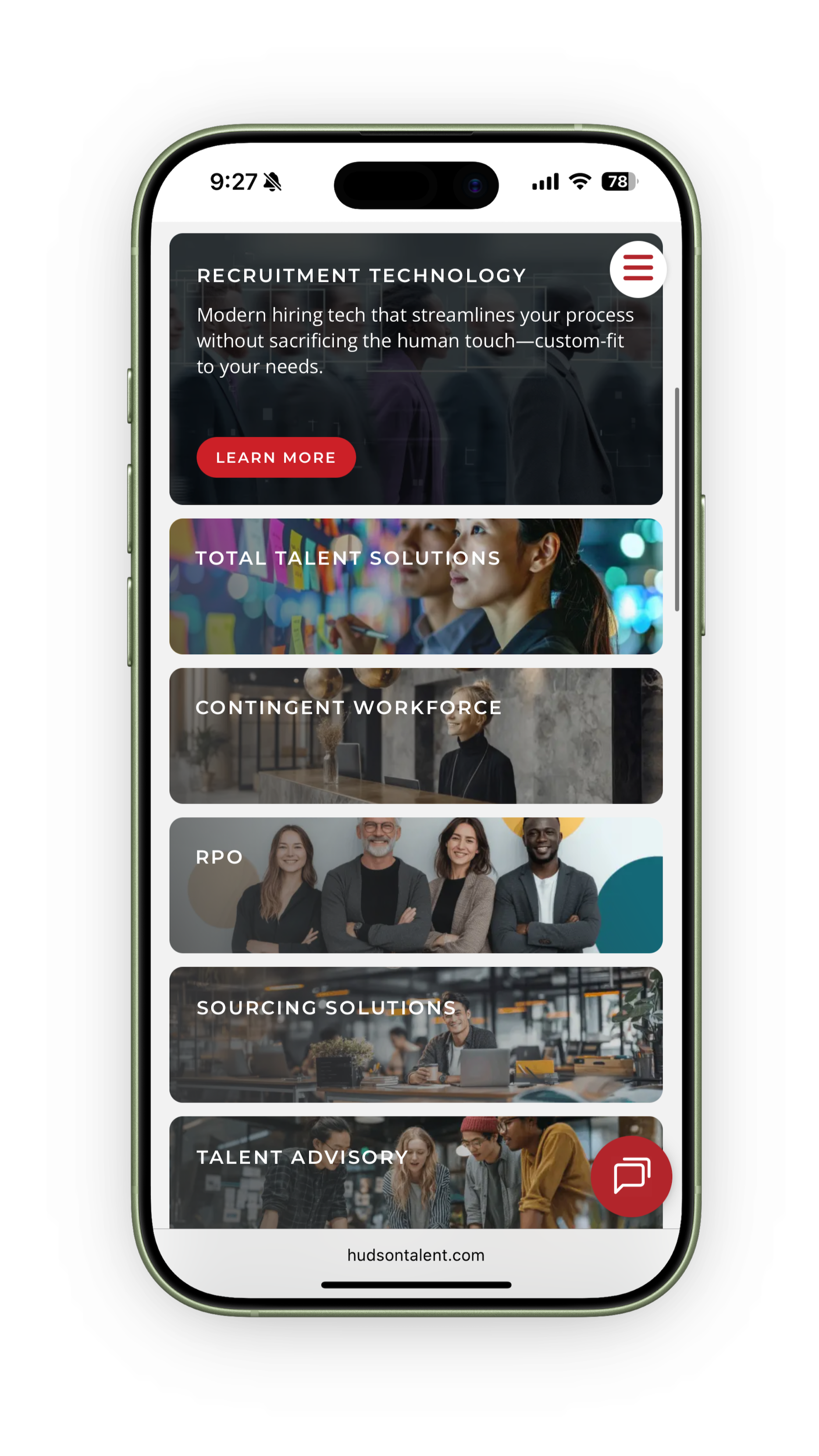 Hudson Talent Solutions is a large, international recruiting firm undergoing a company-wide rebrand. This project focused on redesigning their website to align with the new brand direction, simplify a dense and complexcontent ecosystem, and present Hudson as a modern, innovative leader in the recruiting space.